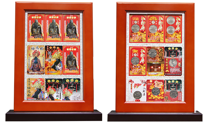 管理委員會感謝信眾對福德祠的支持與愛護為能保存收納製作木質框架雙面透明贈送給收集擁有12枚錢母的信眾
